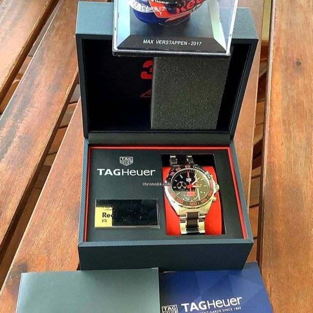 Created in cooperation with Formula 1 driver Max Verstappen, this limited edition Formula 1 timepiece bears the colours of the Dutch flag and is marked with the number 33.