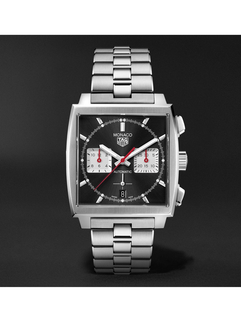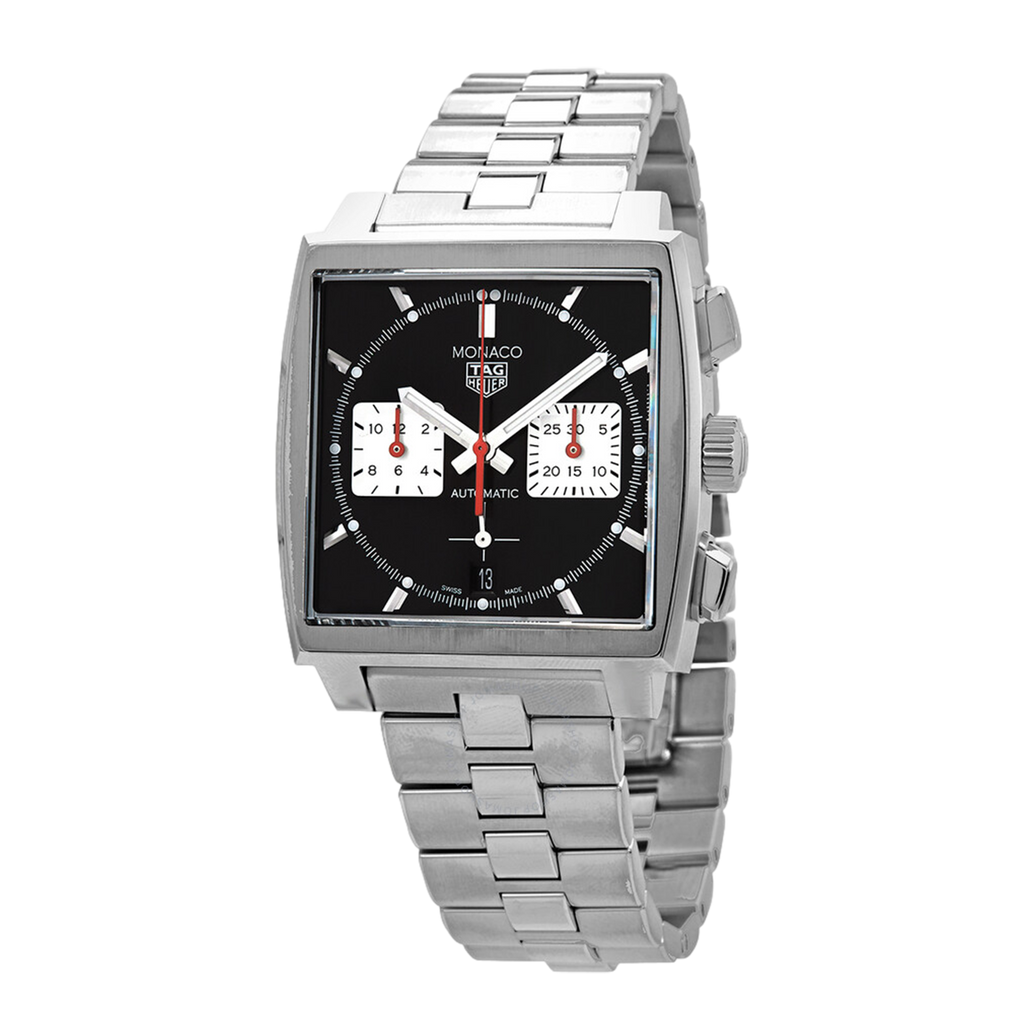 Tag Heuer Monaco Automatic Chronograph Black Dial Silver Steel Strap Watch for Men - CBL2113.BA0644