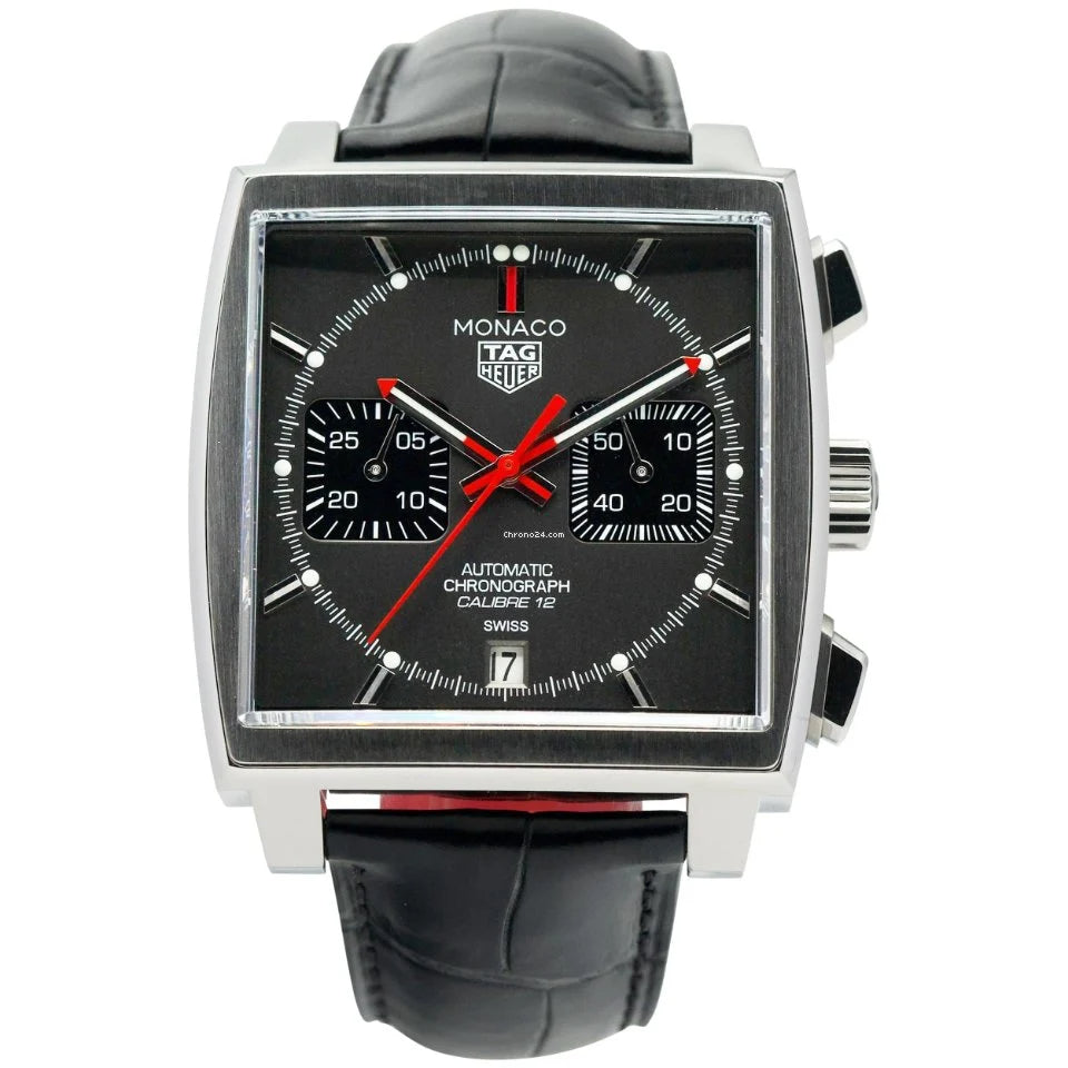 Tag Heuer Monaco Calibre 12 Final Edition Chronograph Grey Dial Black Leather Strap Watch for Men - CAW211J.FC6476
