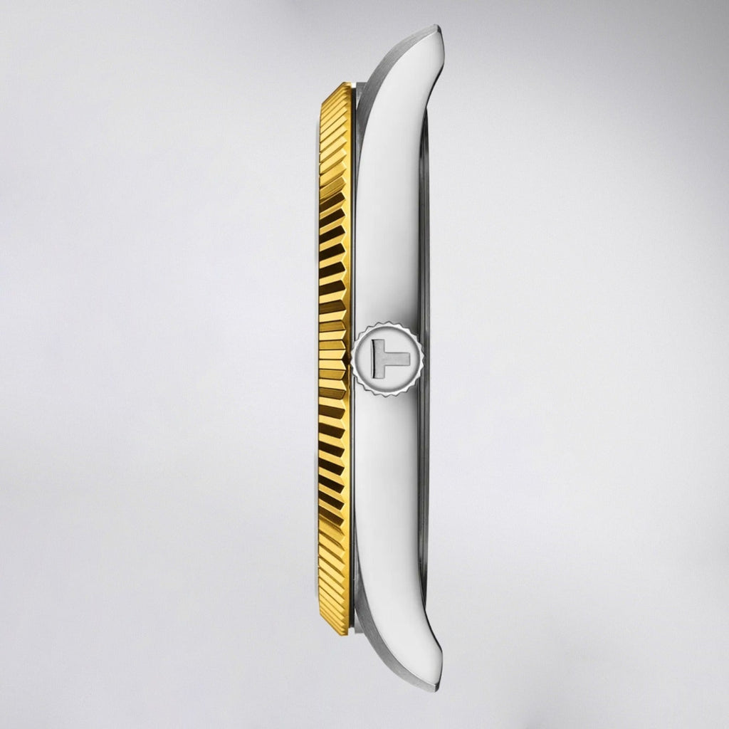 The Tissot Ballade combines timeless elegance with Swiss precision. This quartz watch features a refined silver dial housed in a two-tone stainless steel case, striking the perfect balance between classic and contemporary design. The matching two-tone steel bracelet ensures comfort and durability for everyday wear or special occasions. Built on Tissot's heritage of watchmaking excellence, this timepiece delivers reliable performance and sophisticated style for the discerning gentleman.