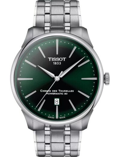 Tissot Chemin des Tourelles Powermatic 80 Green Dial Silver Steel Strap Watch for Men - T139.407.11.091.00