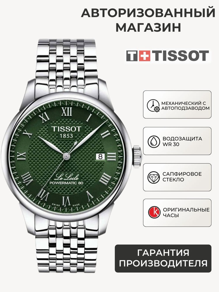 Tissot Le Locle Powermatic 80 Automatic Green Dial Silver Steel Strap Watch for Men - T006.407.11.093.00