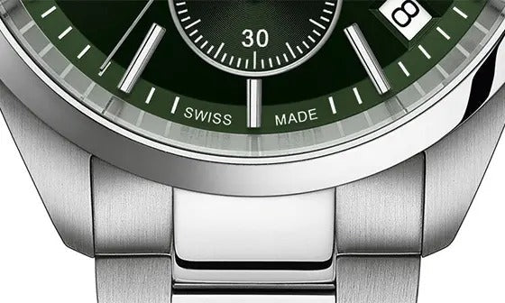 Dial Green sun-brushed dial with white minutes track on outer dial