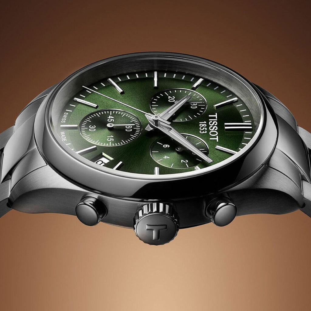 Tissot PR 100 Chronograph Green Dial Silver Steel Strap Watch for Men - T150.417.11.091.00