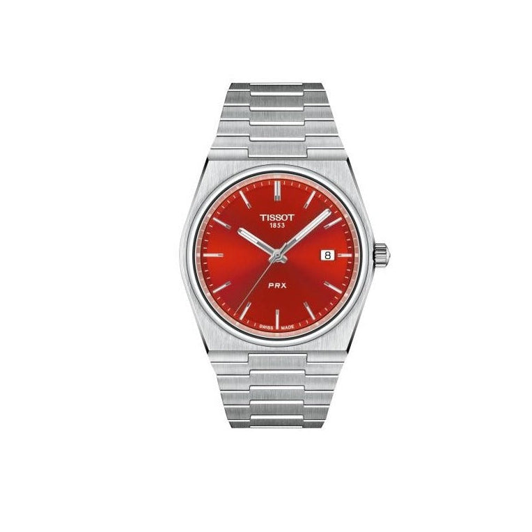 Tissot PRX Quartz Red Dial Silver Steel Strap Watch for Men - T137.410.11.421.00