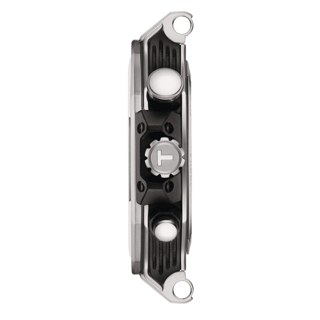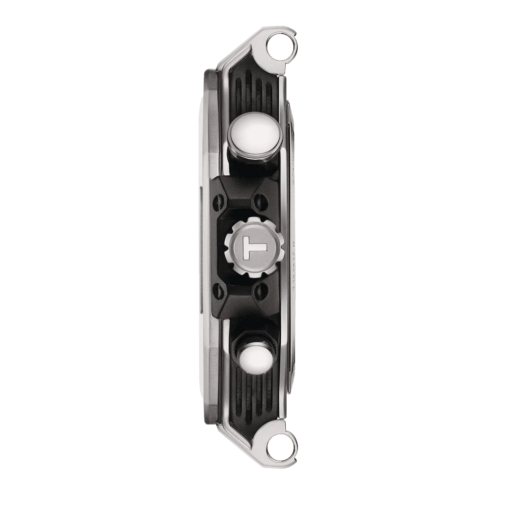Chronograph sub-dials display: 1/10th of a Second, 60 Second, 30 Minute. Calendar: Date between 4 and 5 o'clock position. Powered by Tissot Caliber ETA G10.212 engine. Watch functions: Date, Hour, Minute, Second, Chronograph. Push-Pull crown. Scratch Resistant Sapphire crystal. Round case shape. Case size: 45mm. Case thickness: 11.80mm. Engraved Caseback. 100 Meters - 330 Feet water resistant. 2-year warranty. Also known as model: T1414171704700.