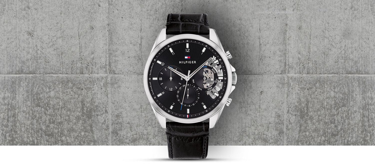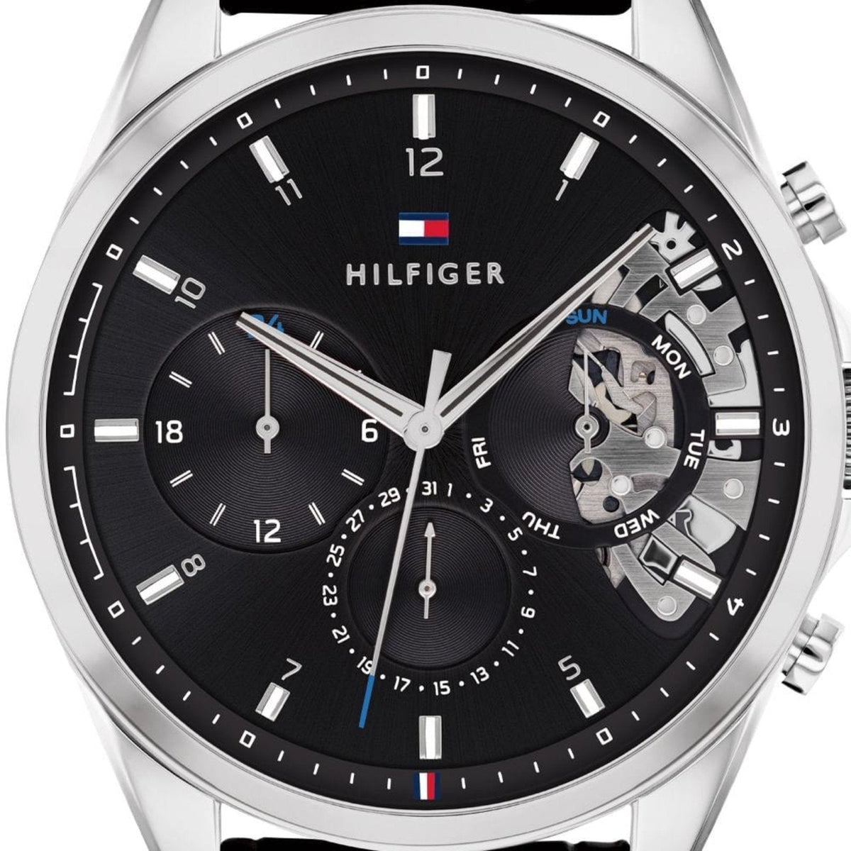 Tommy Hilfiger Baker Chronograph Black Dial Black Leather Strap Watch For Men - 1710449